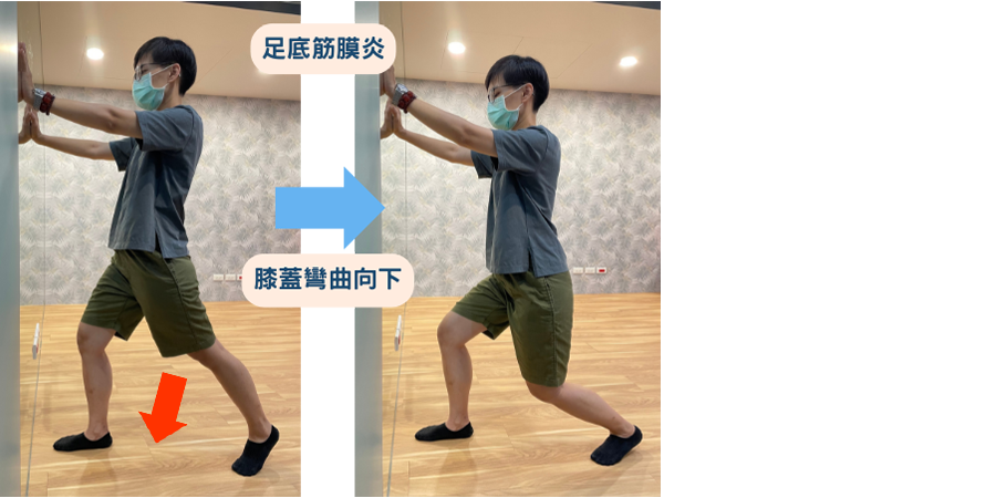 動作敘述: 弓箭步拉筋(雙手扶牆)